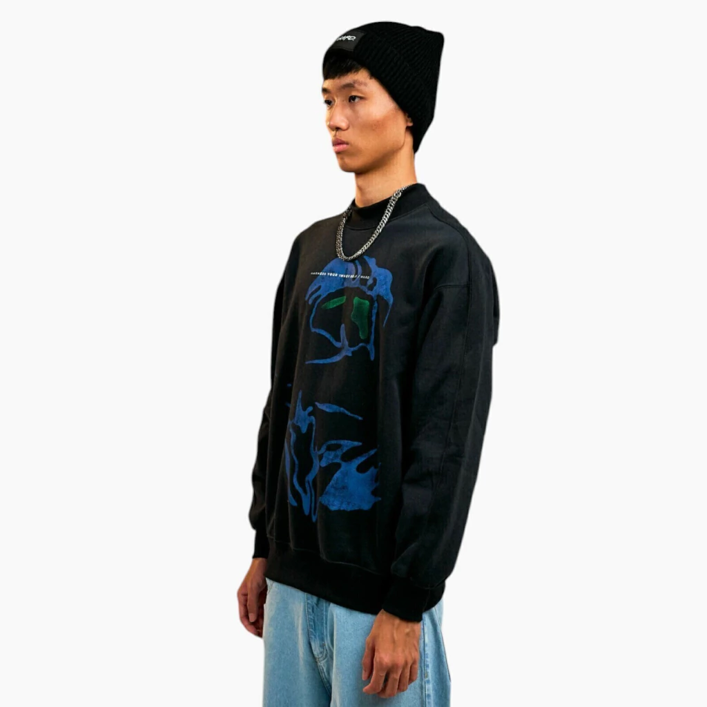 Este buzo de cuello redondo está confeccionado con friza peinada, ofreciendo un acabado suave y cómodo. Su diseño oversize proporciona un estilo relajado, ideal para cualquier ocasión.