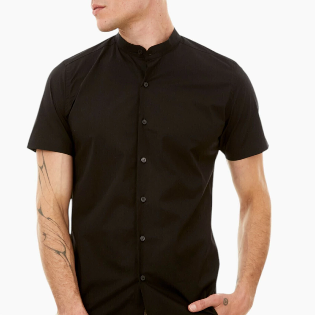 Camisa de Poplin de Mangas Cortas con Cuello Mao, una prenda ideal para cualquier ocasión. Confeccionada en un tejido suave y ligero, esta camisa ofrece comodidad y estilo. Su diseño moderno y versátil la convierte en un básico en tu guardarropa.