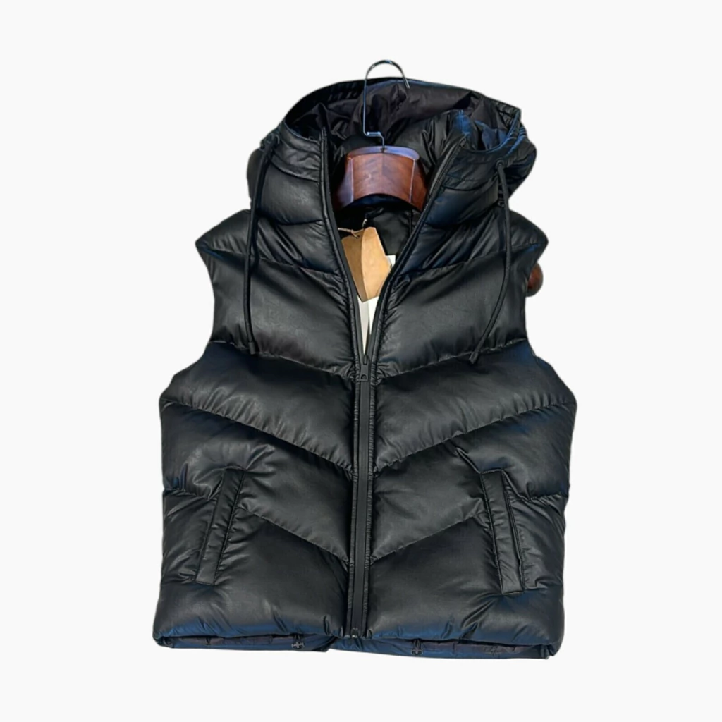 Este chaleco combina la elegancia del simil cuero PU con la practicidad de un diseño acolchonado. Ideal para complementar tus looks de invierno con un estilo moderno y cómodo. Su confección garantiza abrigo sin perder ligereza, perfecto para el uso diario en la ciudad.