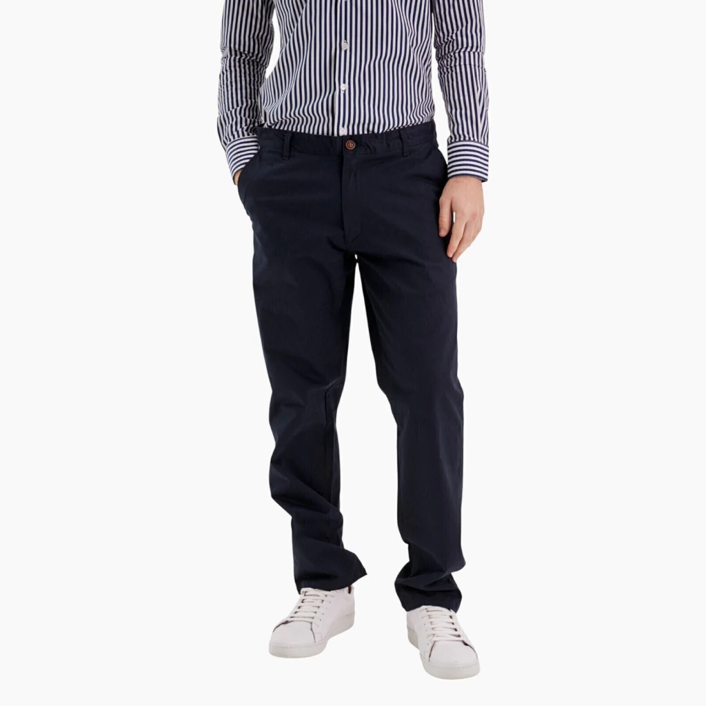 Descubrí este pantalón chino de gabardina con corte regular, ideal para un look casual y cómodo. Confeccionado en tela resistente y suave, combina estilo y funcionalidad. Cuenta con bolsillos frontales y traseros, perfectos para el día a día.