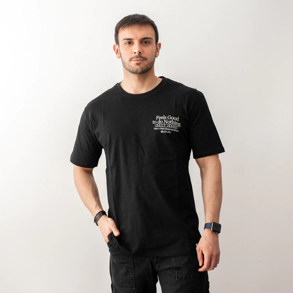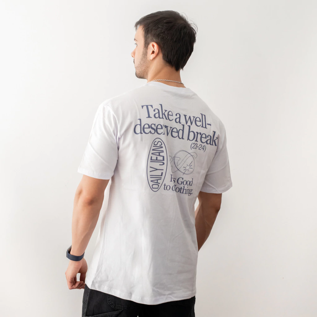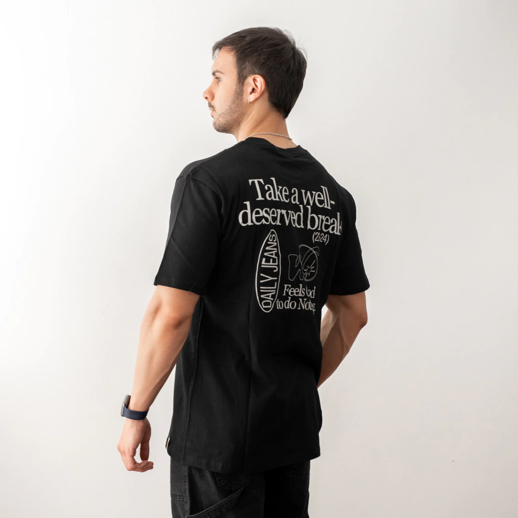 Disfrutá de la comodidad y estilo con esta remera de algodón 100%, ideal para el uso diario. Cuenta con mangas cortas y una estampa moderna en el pecho y otra principal en la espalda que la hacen única.