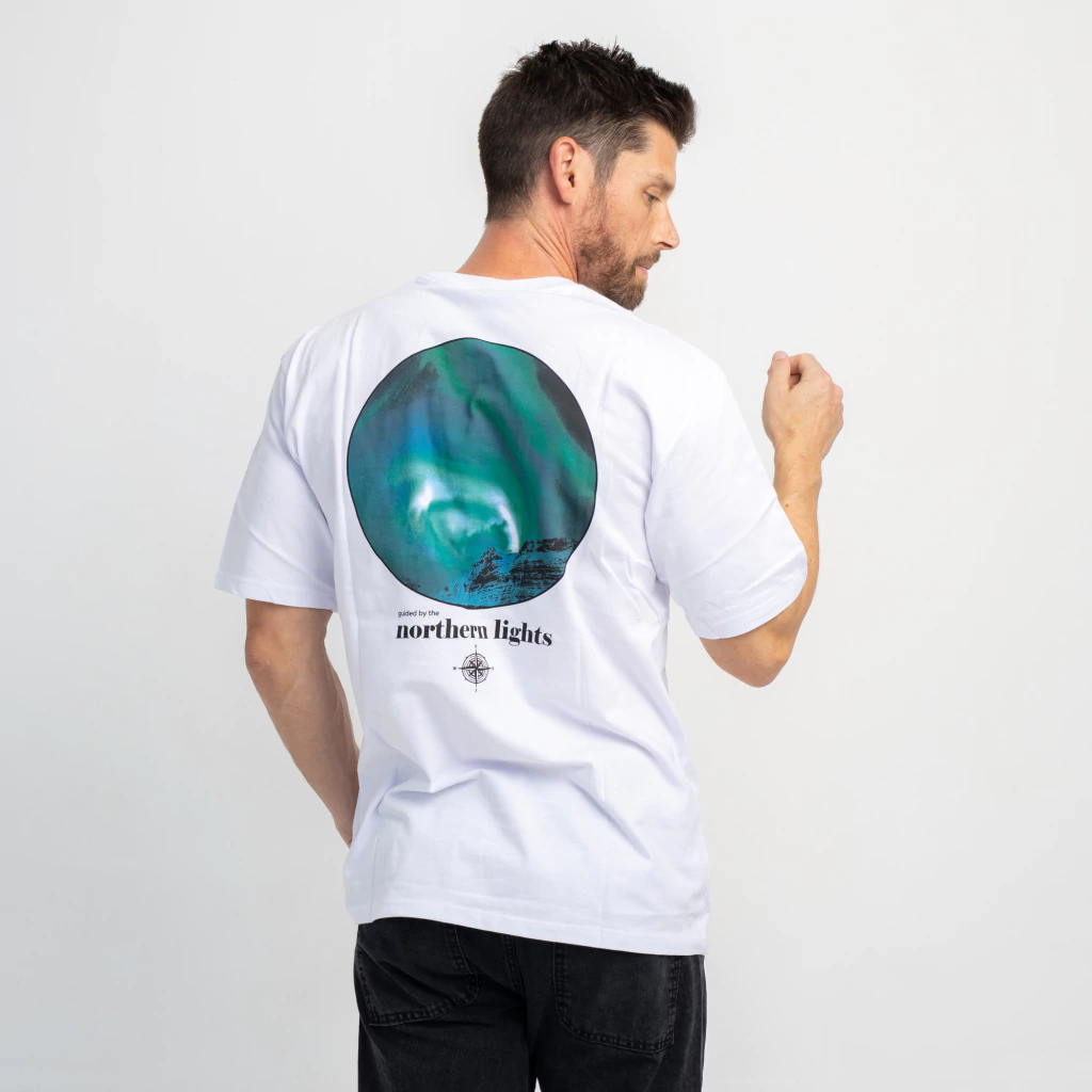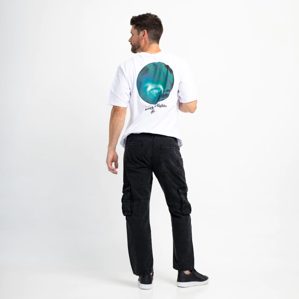 Disfrutá de la comodidad y estilo con esta remera de algodón 100% y mangas cortas. Su corte relajado y las estampas en el pecho y la espalda le dan un toque moderno y único, ideal para cualquier ocasión casual.