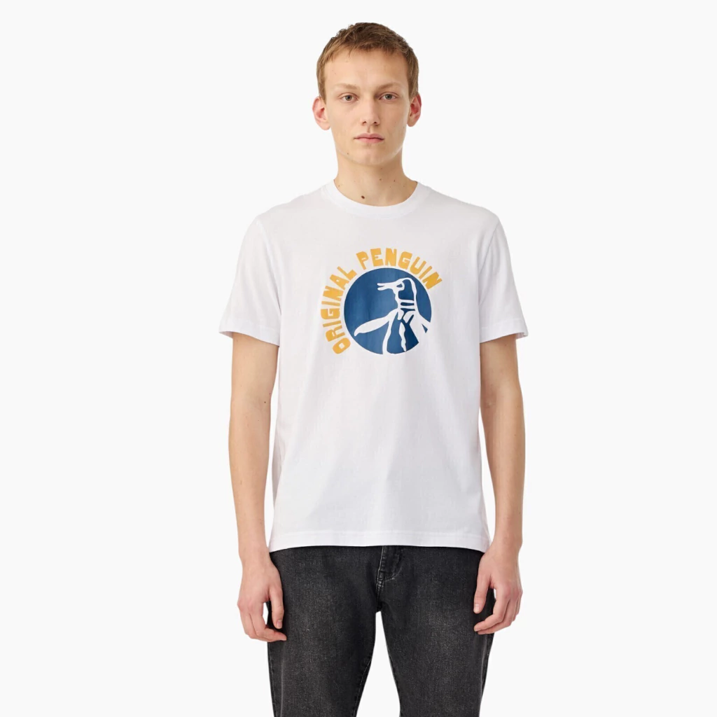 Remera cuello redondo, realizada en jersey con rib al tono y estampa centrada en pecho de circulo con logo pingüino y texto curvo a dos colores, etiqueta grifa con logo pingüino, en ruedo de manga izquierda.