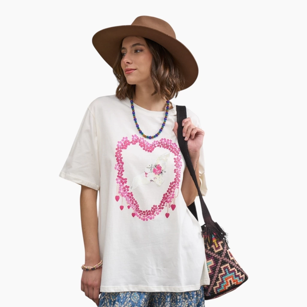 Composición del tejido: 100% algodón - Lavar con agua fría. -Lavar por separado. - No usar blanqueador. - No planchar sobre la estampa. - Secar a la sombra.