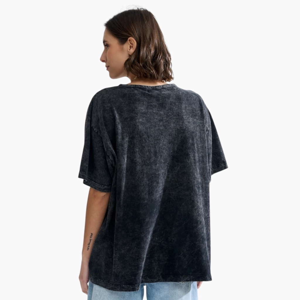 Remerón de jersey de algodón teñido de forma artesanal. Tiene estampa en el frente. La modelo usa talle Small. Las medidas de una prenda talle Small son: Ancho de espalda: 56cm Contorno de pecho: 128cm Largo: 64cm