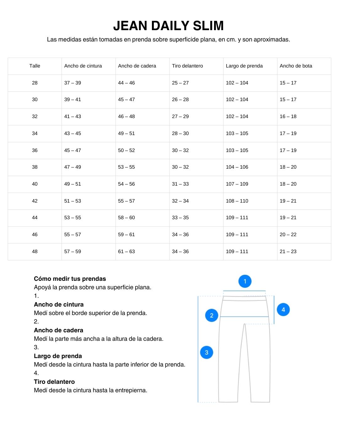Modelo usa talle 32, mide 1,82 m. de estatura, (Daily usa Talla norteamericana, corresponde a 10 números menos de los talles tradicionales argentinos).