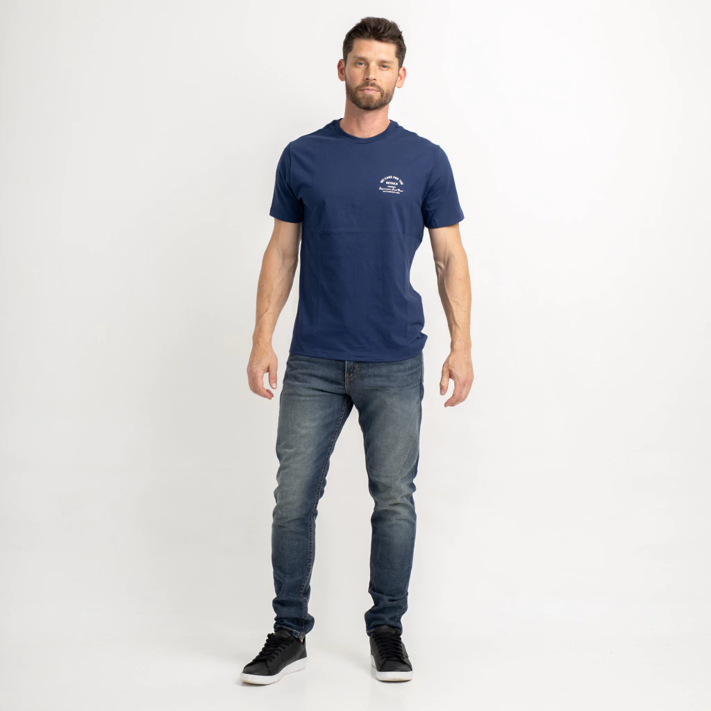 Este jean tiene un fit ajustado, marcado en la cadera y muslo, con pierna tapered que sienta justo debajo de la cintura. Disponible en talles: 30-30, 32-32, 34-32, 36-32 y 38-32. Ideal para quienes buscan comodidad y estilo moderno.
