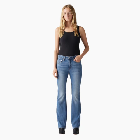 Pantalón de cintura alta con calce ajustado en cadera y muslo, y pierna acampanada que aporta estilo y comodidad. Confeccionado en una mezcla de 80% algodón, 19% poliéster y 1% elastano, ofrece un stretch ideal para mayor movilidad. Perfecto para quienes buscan una prenda versátil y moderna, combinando calidad y diseño en cada detalle.